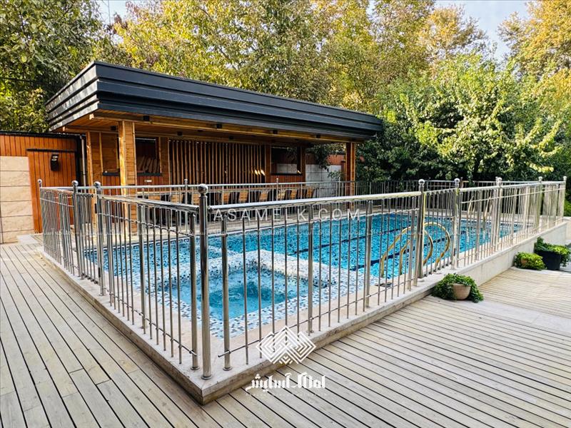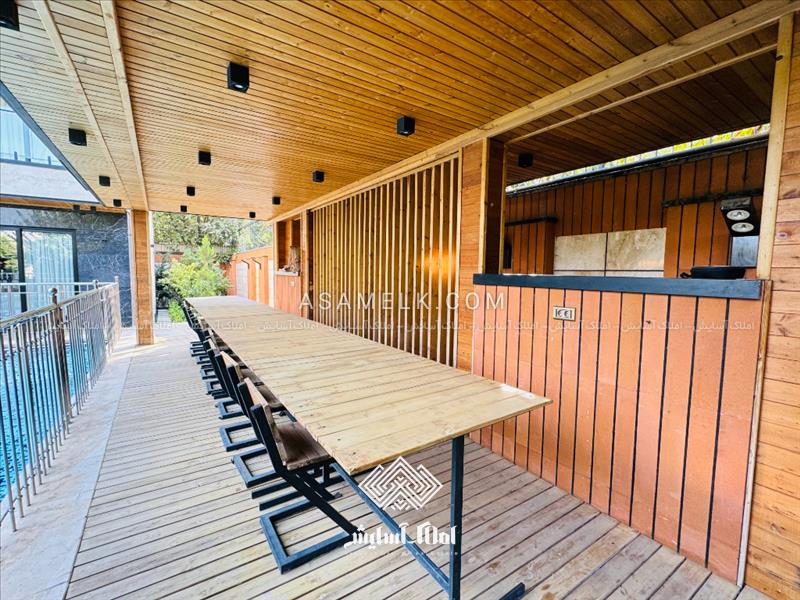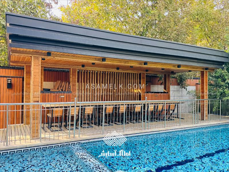 در کنار استخر آلاچیق چوبی با چشمانداز زیبا به بخشهای مختلف باغویلا طراحی شده که محیطی آرام و دلنشین ایجاد کرده