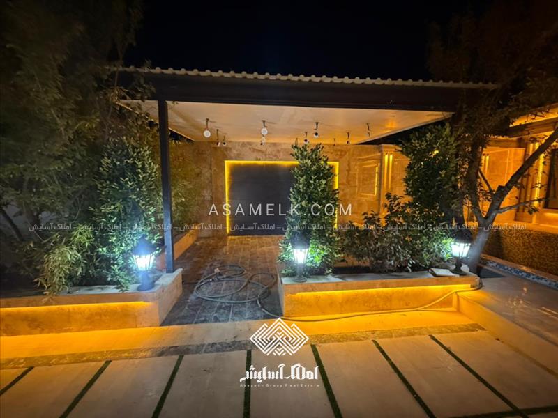 فضاسازی شده با استفاده از درختانمثمر و زینتی + نورپردازی در کل باغویلا